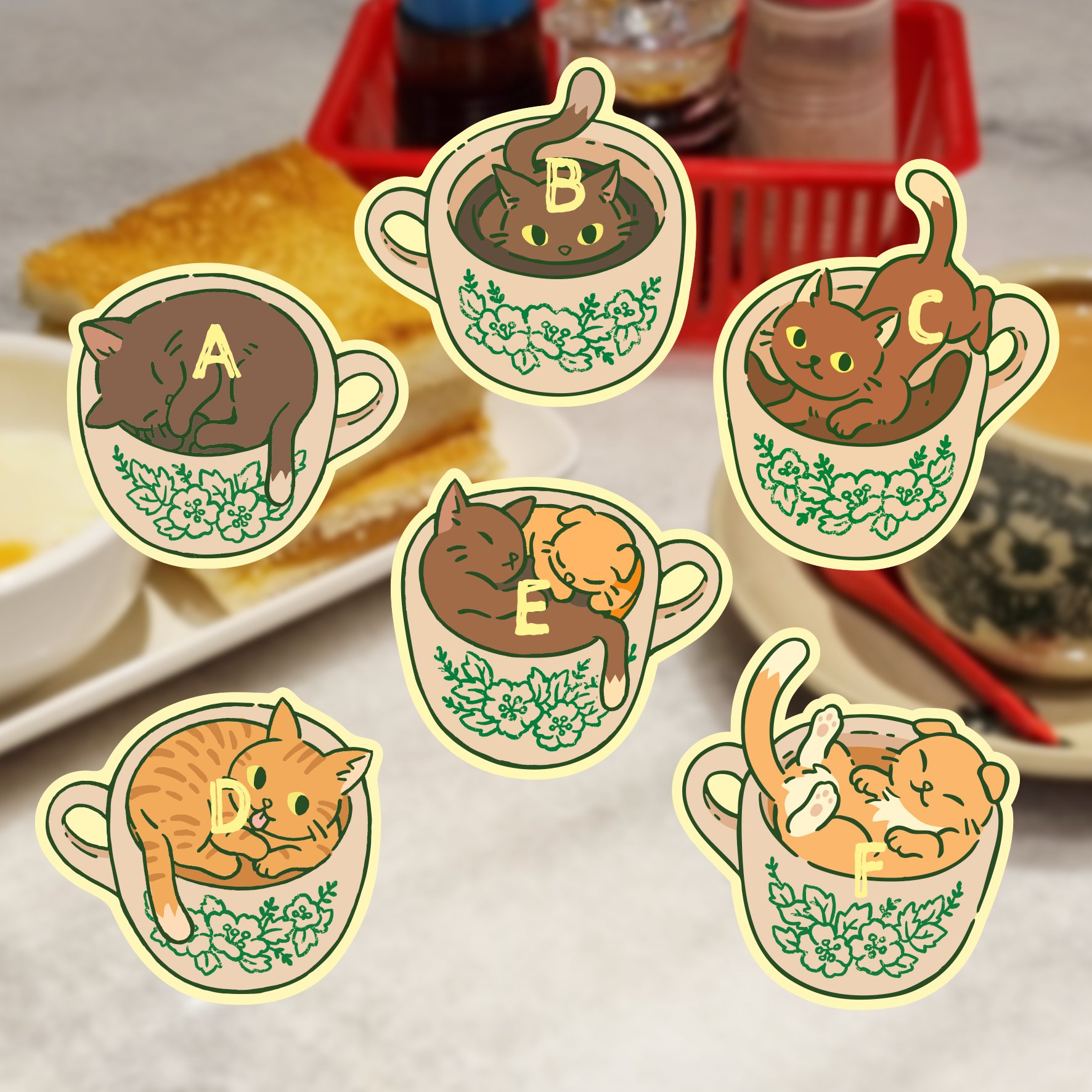 Introducing a new sticker series 'Kopi-cats and Kit-tehs!' 6 designs to choose from. (Refer to image 2 for variants)