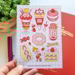 Adorable strawberry desserts lovingly hand-drawn, all on a single sticker sheet!